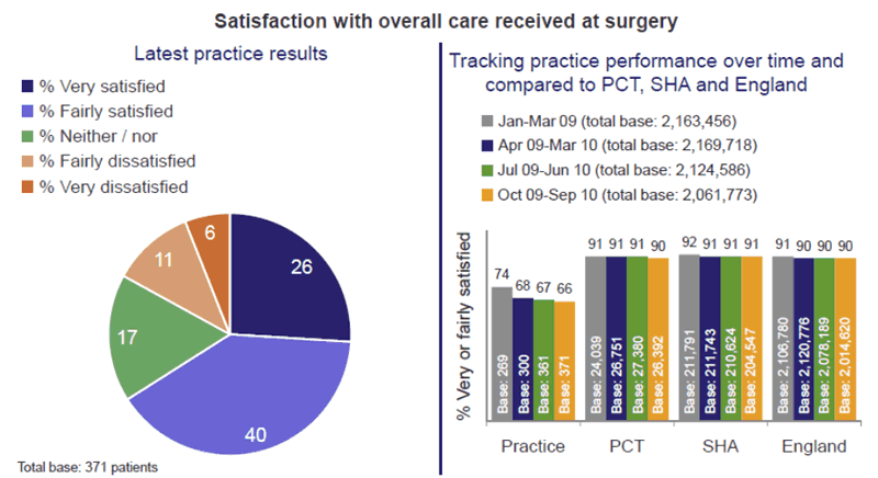 The latest results for the Department of Health Funded UK GP Survey have been recently released that cover the 4 quarters for September 2010. The survey features more than 5.5 million detailed questionnaires being sent out to NHS GP patients across England of which 2.06 million were returned. For the city of Sheffield a total of 67,842 questionnaires were sent out to the patients of Sheffield's 91 GP surgeries of which 26,865 were returned from which detailed results were compiled as listed in the table at the end of this article for the overall level of satisfaction at the quality of health care received for all of Sheffield's GP surgeries.